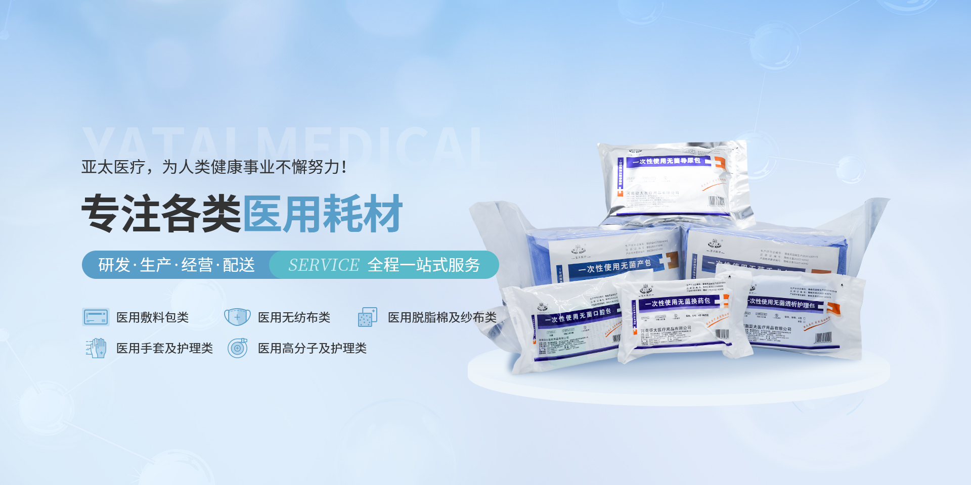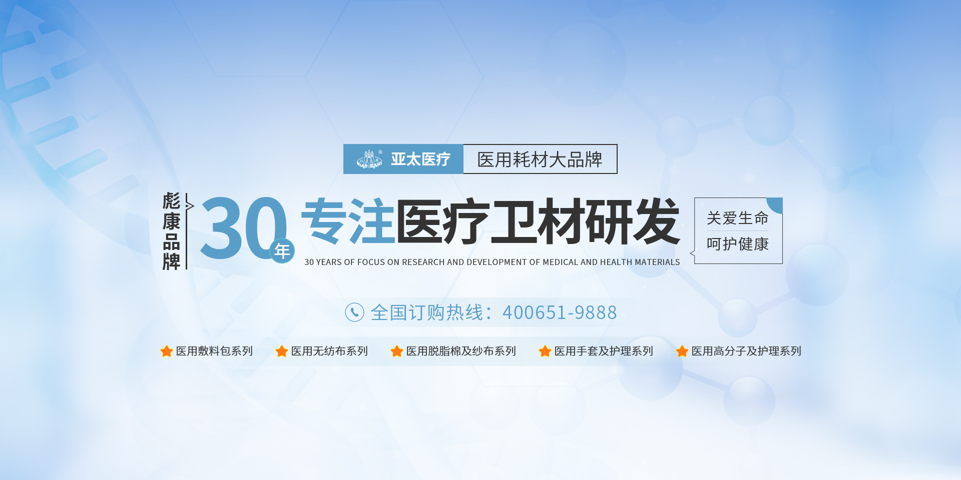 亞太始終專(zhuān)注于一次性醫療器械、衛生材料、高分子及敷料產(chǎn)品的研發(fā)、生產(chǎn)和經(jīng)營(yíng),為人類(lèi)健康事業(yè)的發(fā)展帶來(lái)深遠的意義